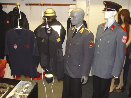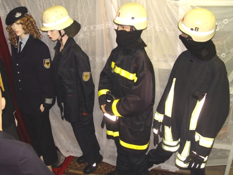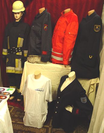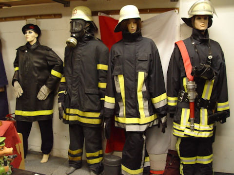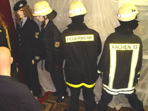 On this photo you can see helmets, hats, patches and Uniforms from different German Fire Services (different Cities and times), USA, Canada, Poland, Turkey, Greece, Switzerland, Thailand, Luxembourg, France, Belgium and Morroco. |