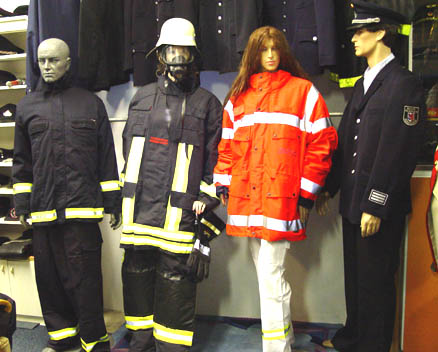 Brandweer The Netherlands: Former mess kit of the Dutch Fire Service (Geldernland-Midden); Turn-out uniform which is used by severaly Dutch Fire Services; 2x current female uniforms of the Dutch Fire Service |