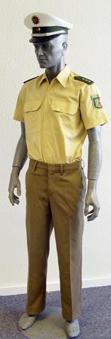 Links: Mütze, Hemd, Hose. Rechts: Mütze, Hemd, Dienstjeans Left: basic uniform. Right: basic uniform with jeans